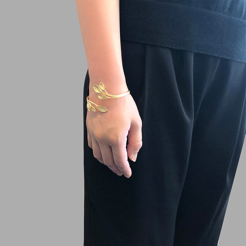 Flower Heart Branches Gold Sterling Sliver Bangle