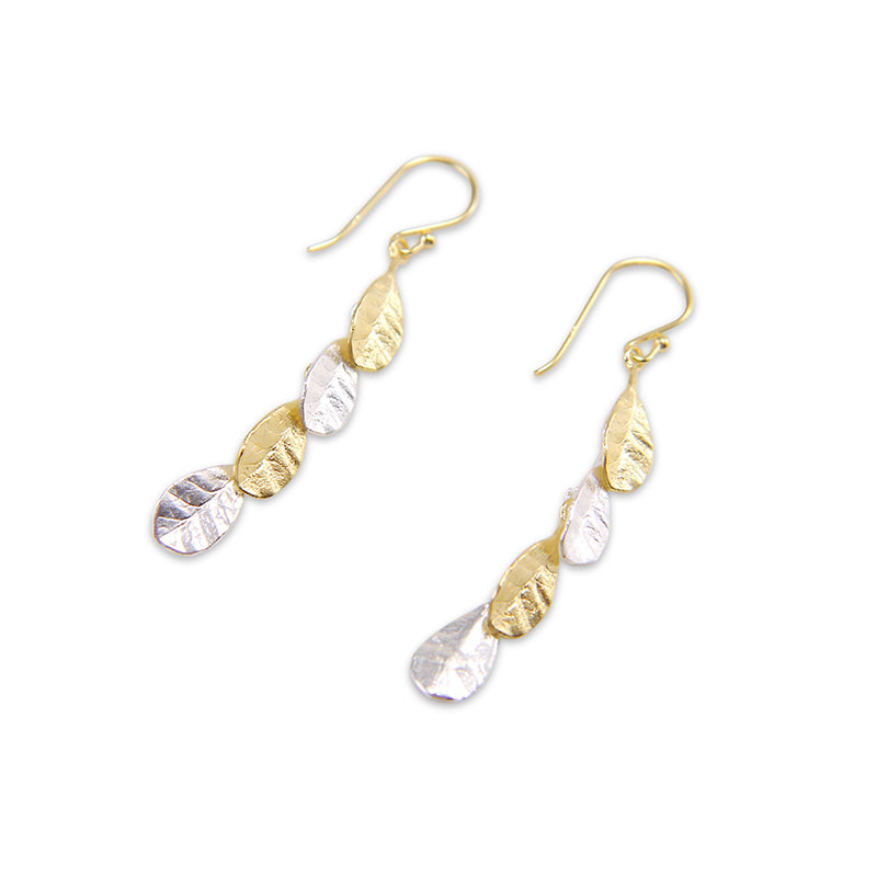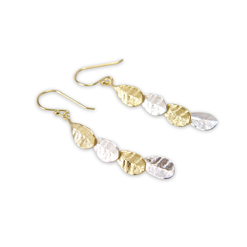 4 small leaves Silver and Gold Sterling Silver Earrings