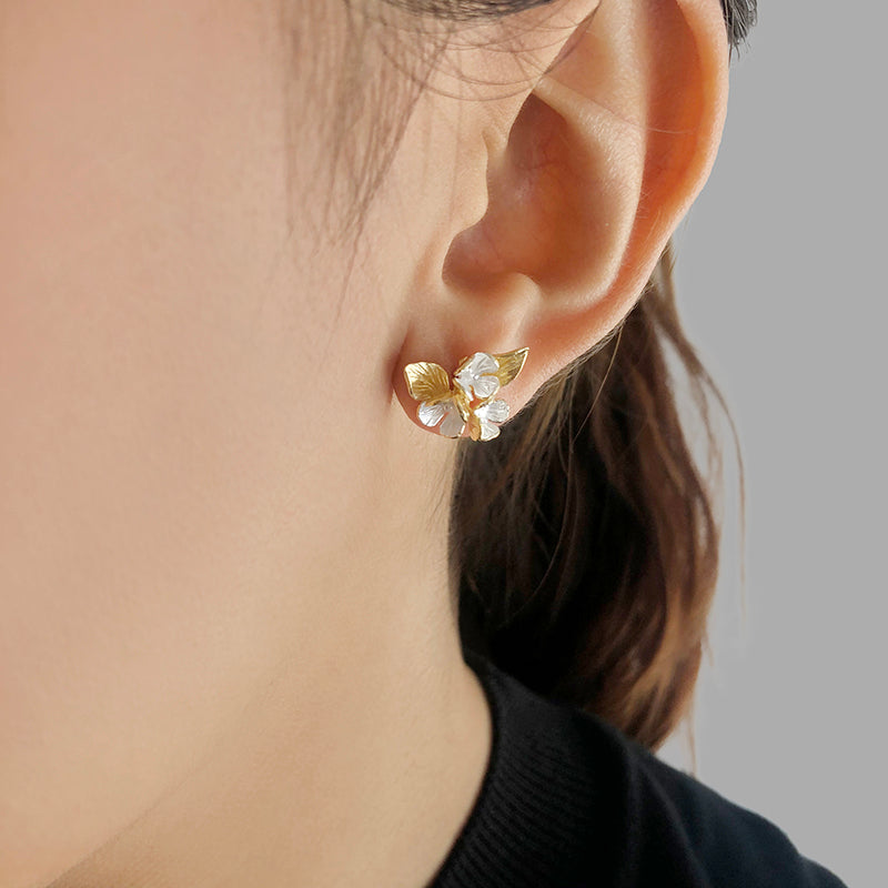 Flower Pedal and the leaf Gold Sterling Silver Earrings