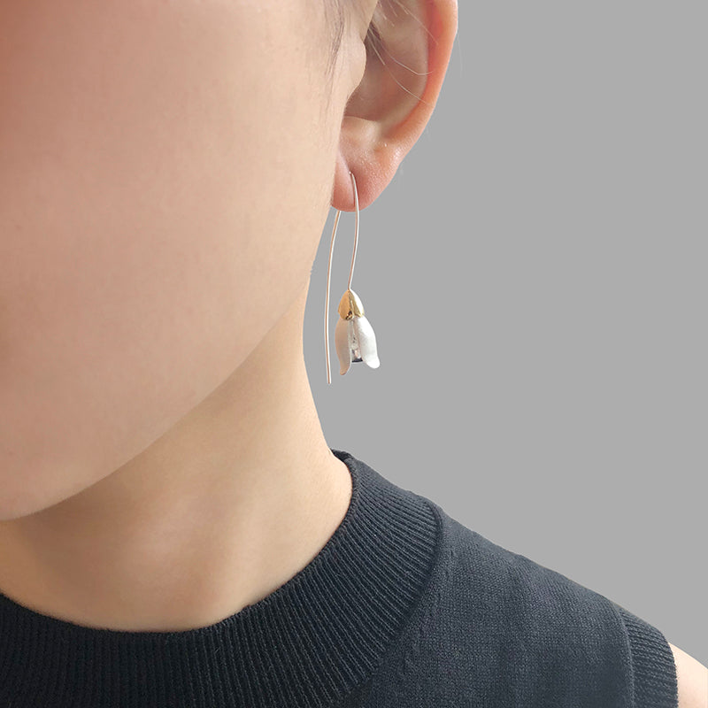 Gold upside down flower silver Steling Pull-Thru Earrings