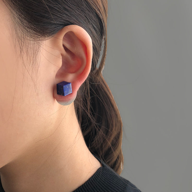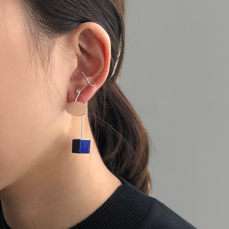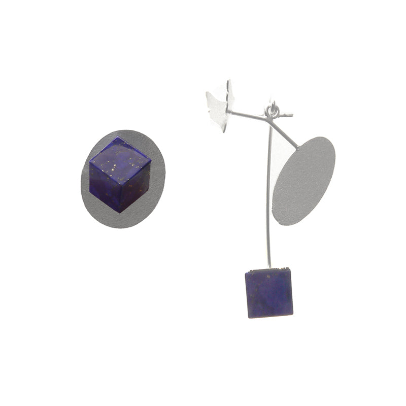 Oval Wing With Blue Marble Sterling Sliver Earrings