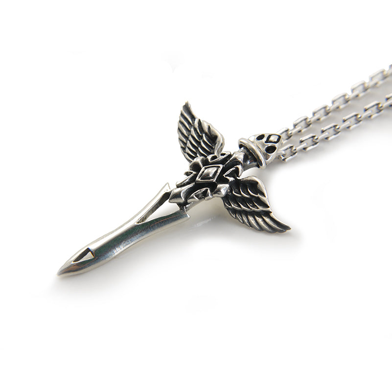 2 Wings Sword End Cross (Large Size) Sterling Silver Necklace
