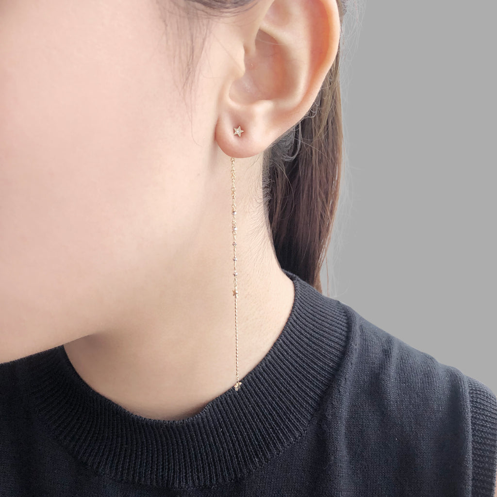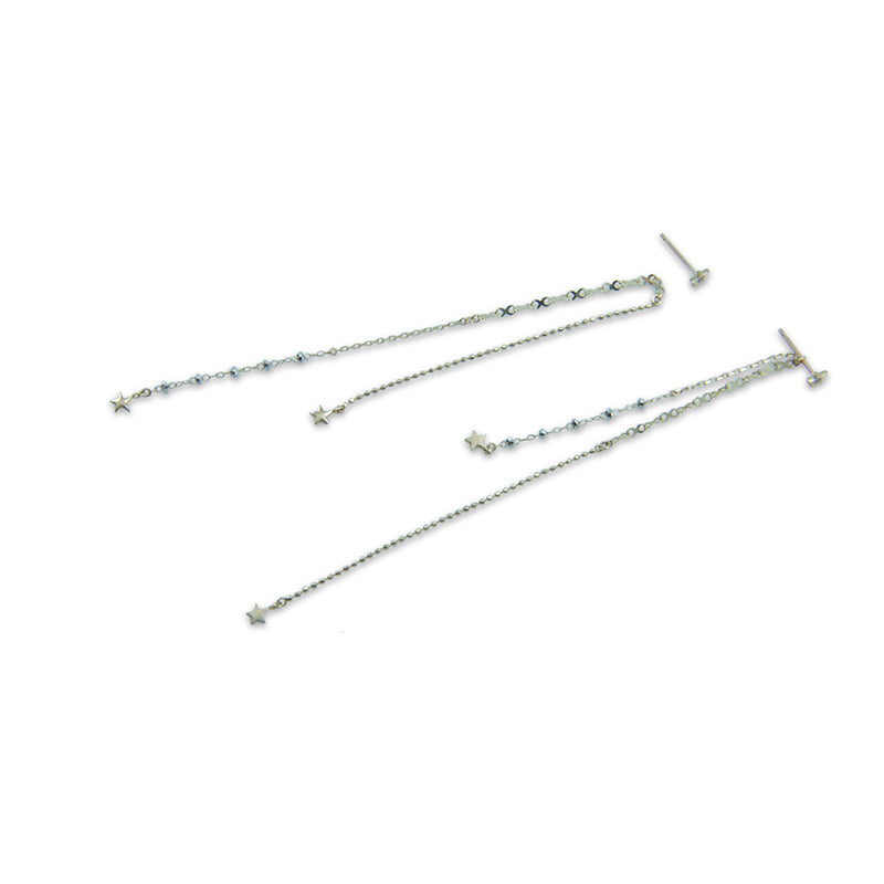 Diamond 0.01ct xoxo chain cable with cut ball chain and star 10K real gold earrings