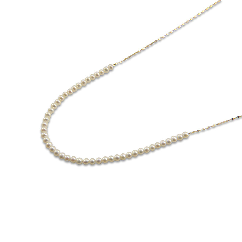 Link of Fresh Water Pearl 10K Real Gold Eye Chain Medium Necklace