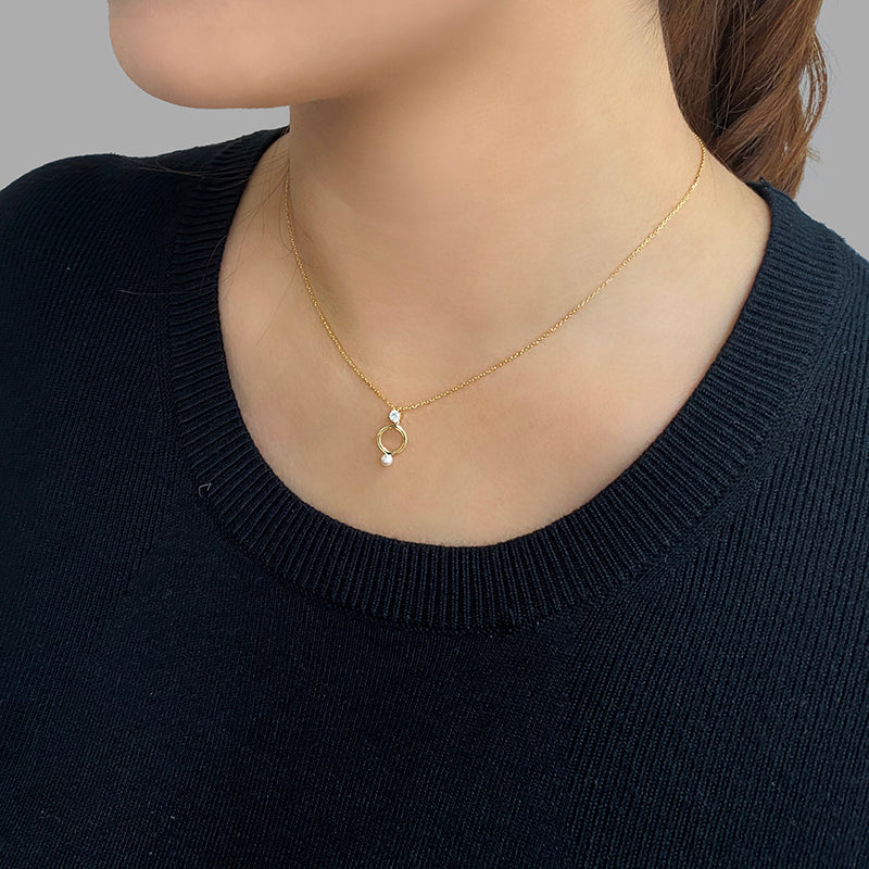 Cutout Circle Pearl and Crystal Gold Sterling Silver Necklace