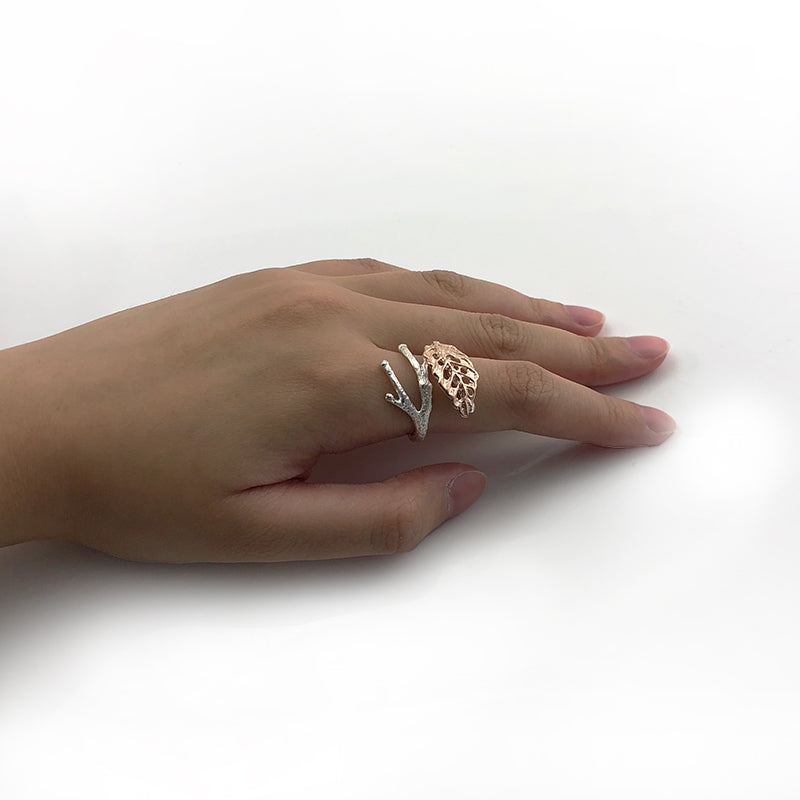 Curved Leaf Rose Gold Sterling Sliver Ring