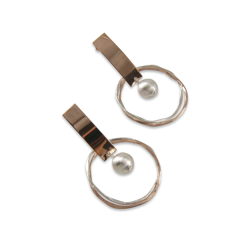Cutout big circle with drop solid ball Rose Gold Sterling Silver Earrings