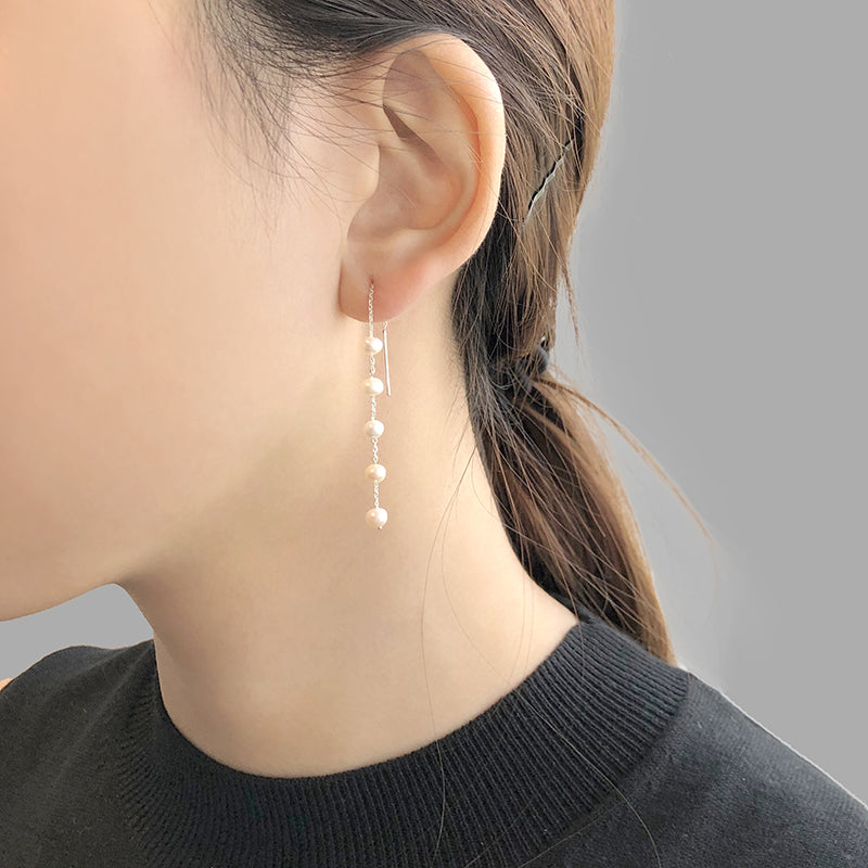 Mini Pearls Sterling Silver Pull-Thru Chain Earrings