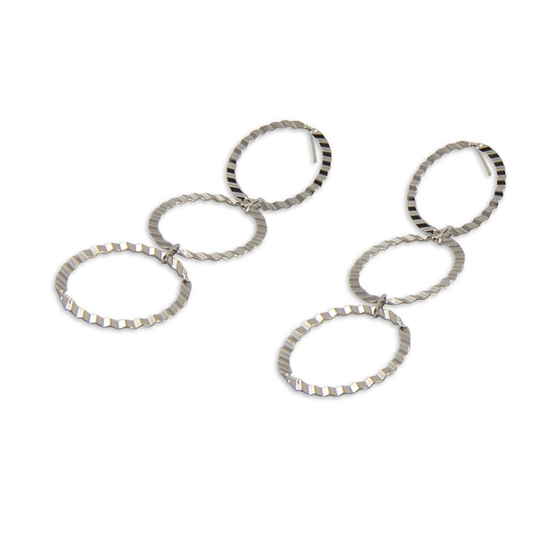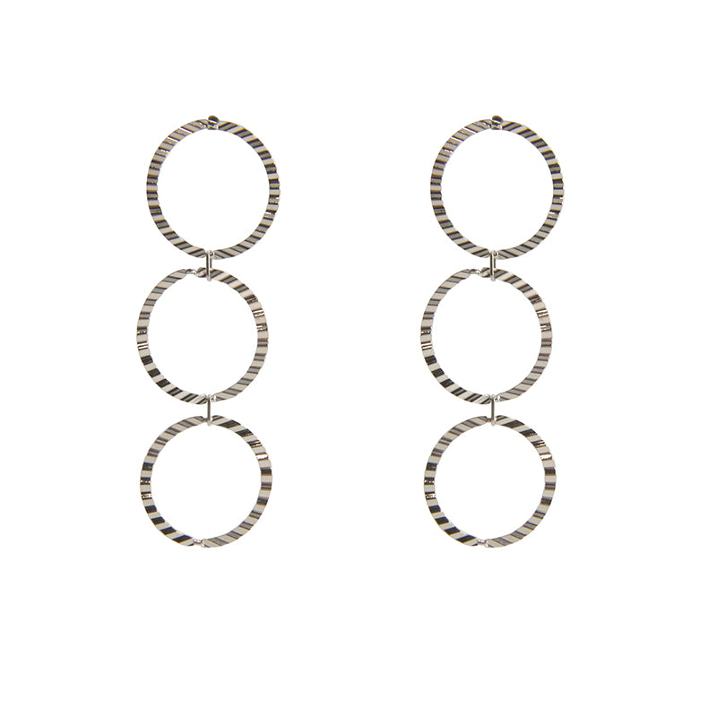 Triple circle Sterling Silver Pull-Thru Chain Earrings
