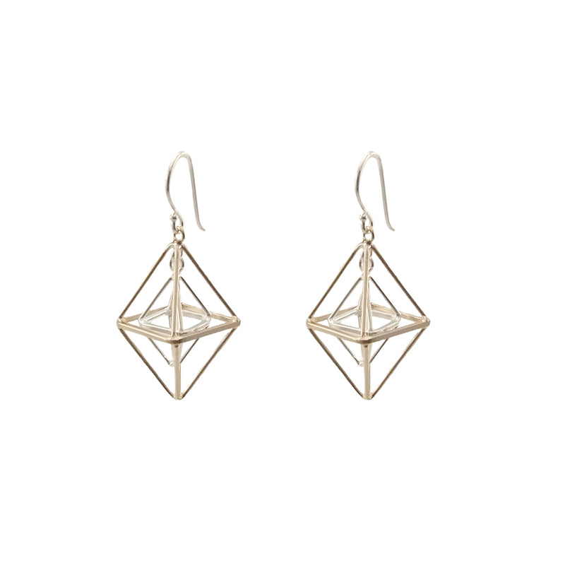 Duo 3D Cutout Diamond Rose Gold & Sliver Sterling Sliver Earrings